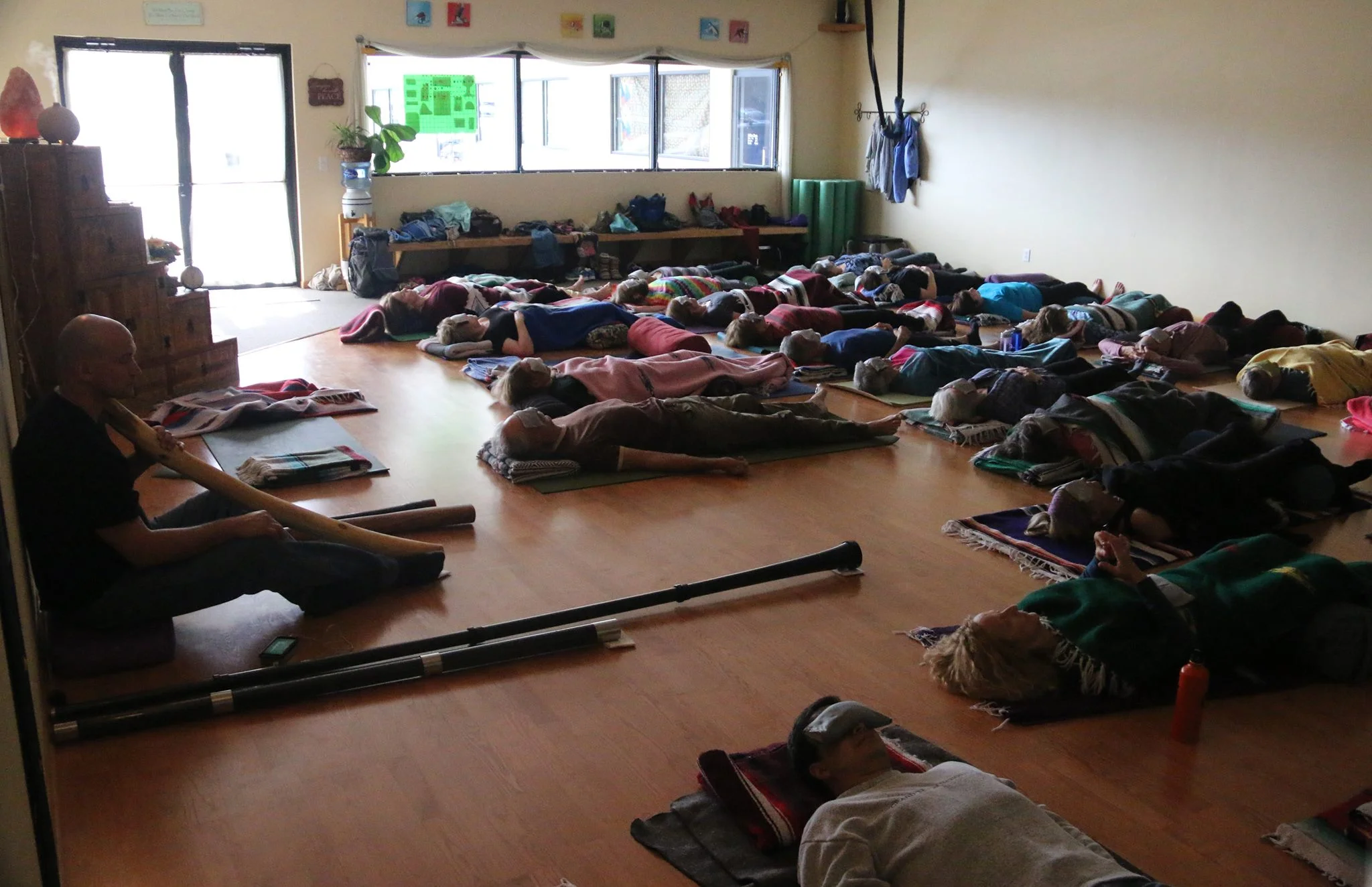 This didgeridoo sound healing yoga class supports an existing yoga practice with the addition of sound to promote a deeper connection with the energetics of the body. The yoga class is conducted normally and led by a studio instructor(*).